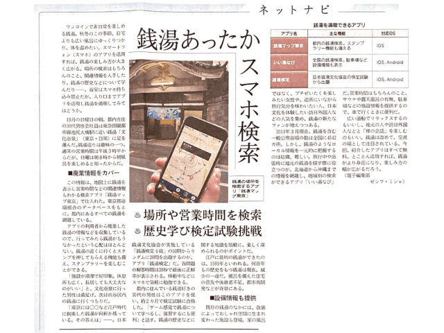 「銭湯マップ東京」が日経新聞に掲載されました。
